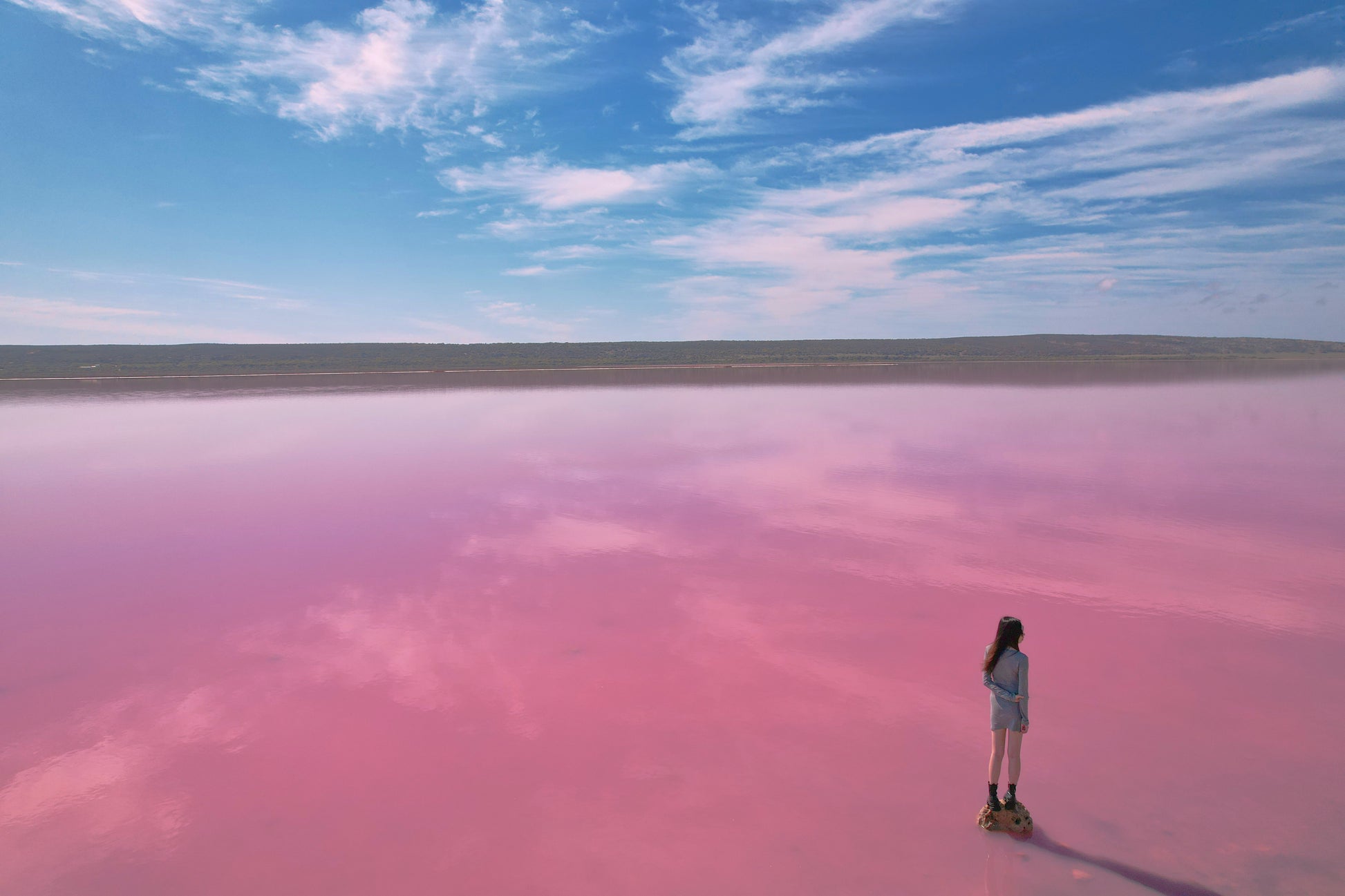 無人機空拍與粉紅湖合影