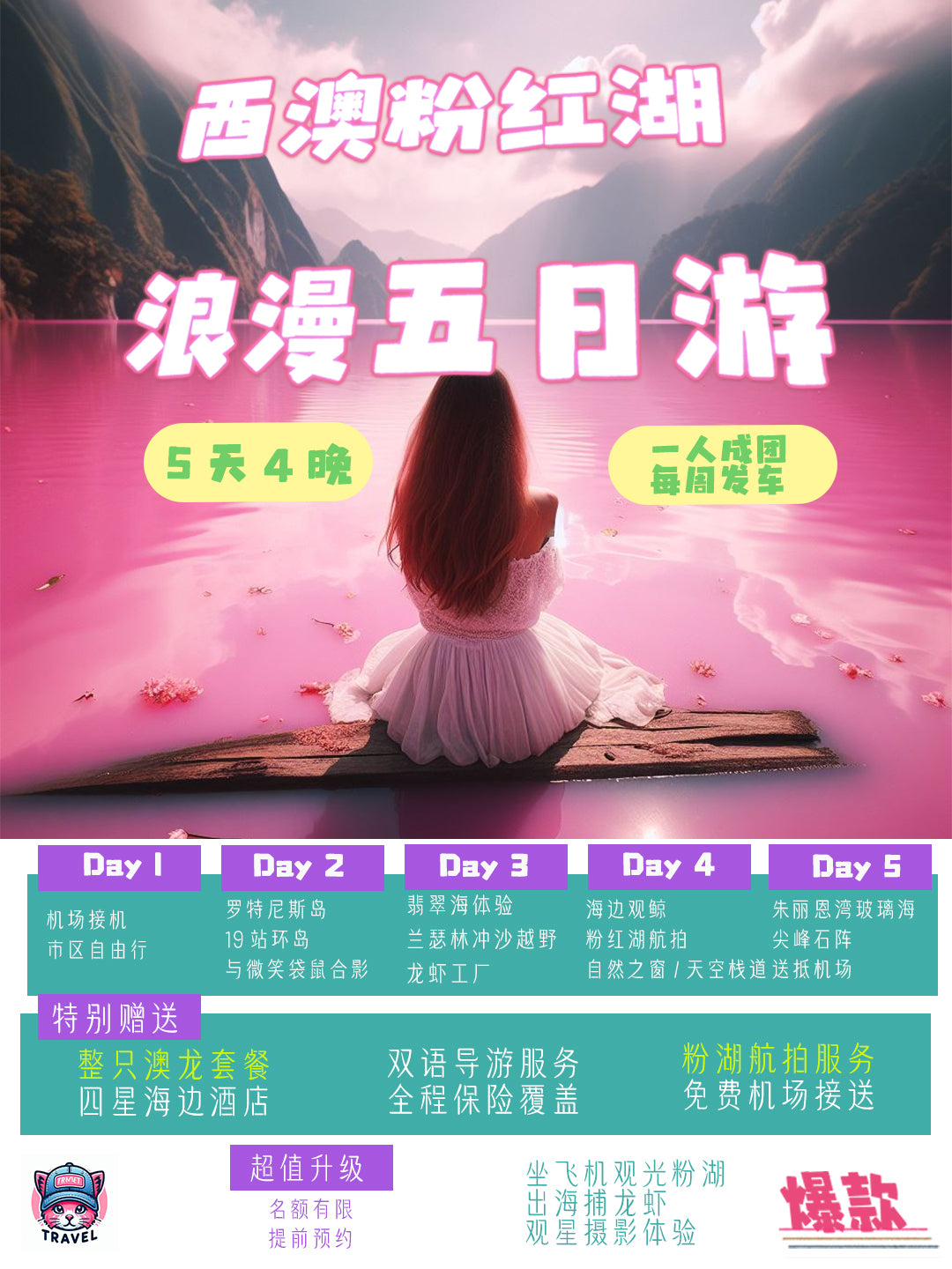西澳珀斯粉紅湖五天四晚爆款