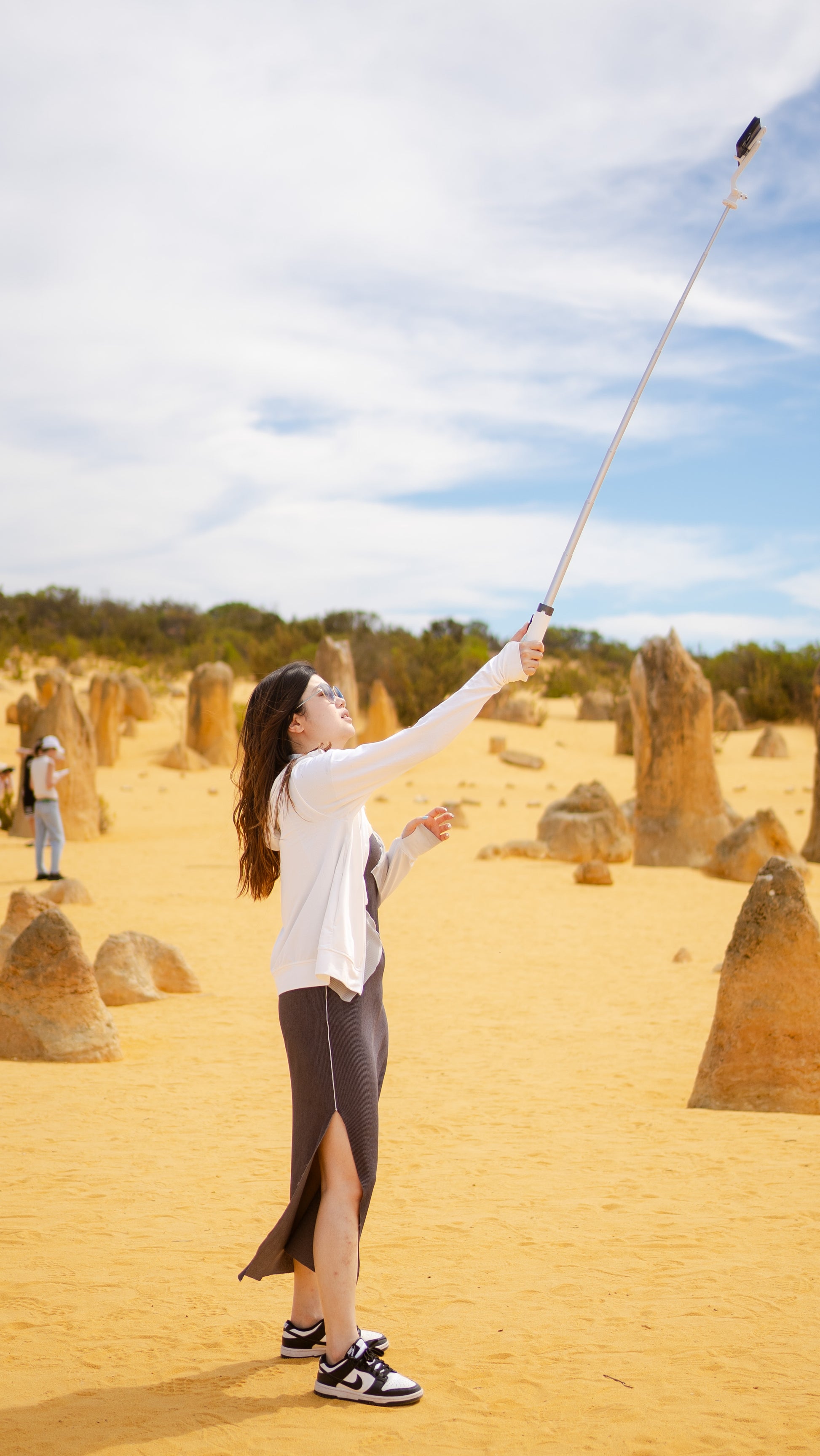 前往尖峰石陣(The Pinnacles Desert),這裡有成千上萬形態各異的石柱,矗立在黃色的沙漠上,尖峰石陣是澳洲最獨特迷人的自然景觀之一。高聳石灰岩尖頂歷經數百萬年形成,在南邦國家公園的黃色沙漠中聳立