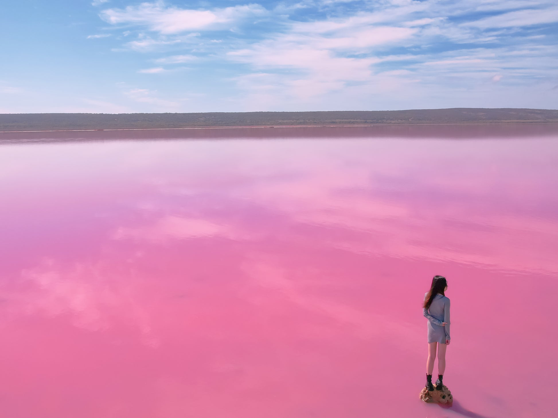 - 无人机航拍与粉红湖合影